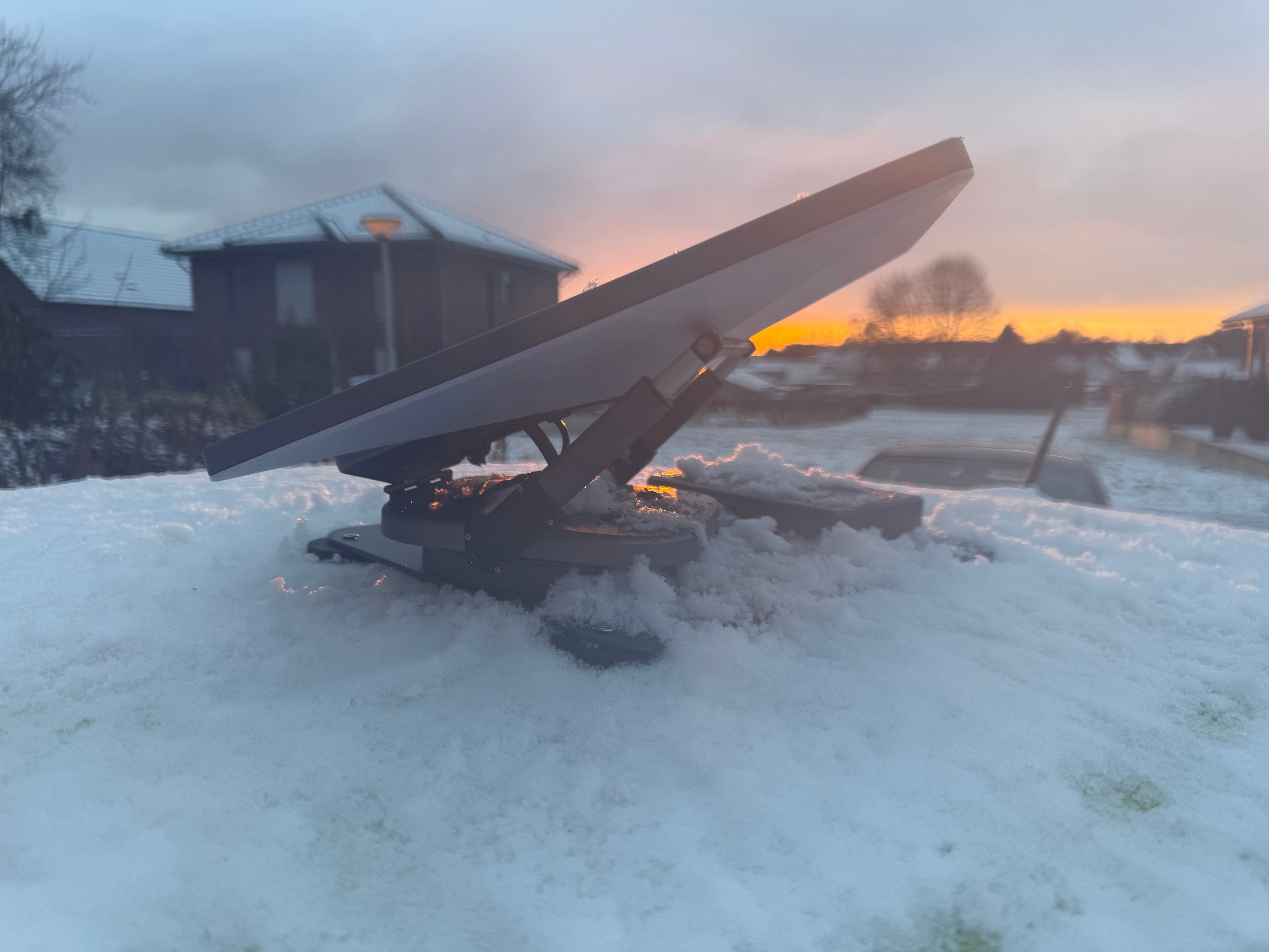 Our top of the line product, SpaceMoover is motorized mount just makes it easier to find a clear direction without climbing on the roof every time. You can literally check the Starlink™ app in one hand and use a 4-button remote in the other, rotate or tilt a bit, and instantly see the connection improve.